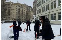 Под руководством учителей физкультуры они дружно и с большим энтузиазмом расчистили дорожки и площадки от свежевыпавшего снега.